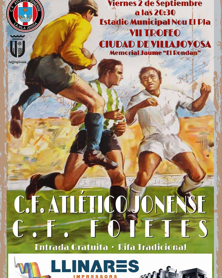 El próximo viernes 2 septiembre a las 20:30 en el Estadio Municipal Nou Pla se celebra la VII Edición Torneo Ciutat de La Vila Joiosa Memorial Jaume el Rondan.