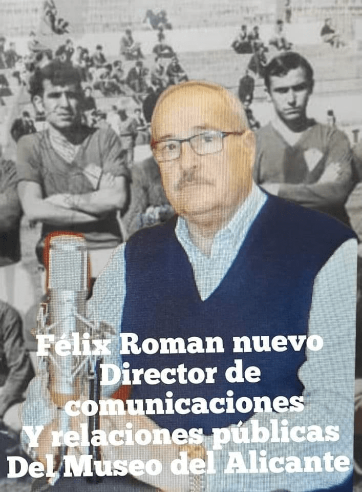 En la reunión de la junta directiva de la ASOCIACIÓN DE VETERANOS DEL ALICANTE CF, presidida por D. Paco Espí, acordó nombrar a Félix Román García, ex colaborador del Diario Información, la Hoja del Lunes y Primera Página de Alicante , excolaborador de Beni Noticias y colaborador de TODODEPORTE Y CALVARI DIGITAL, Director de comunicación y Relaciones públicas del Museo.
