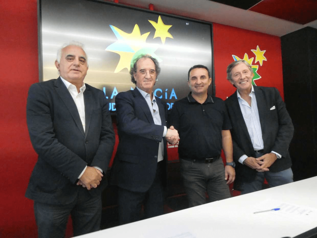 En la firma del acuerdo para realizar la Gala Nacional del Deporte 2023 en La Nucía participaron Julián Redondo, presidente de la Asociación Española de Prensa Deportiva (AEPDE) y Bernabé Cano, alcalde de La Nucía, junto a los vicepresidentes de la AEPDE Jesús Álvarez (TVE) y Pedro Pablo San Martín (TVE- Estudio Estadio).