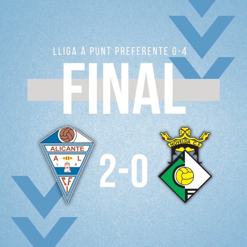 Con mucho sol y con el césped a la medida reglamentaria se a celebrado en el anexo del Antonio solana el partido entre nuestro Alicante CFI y Novelda CF, con un ambiente de incertidumbre tras el resultado del pasado domingo en Benidorm, y con la esperanza de volver a tener la sensación de equipo ganador, cosa que desgraciadamente no lo hemos visto un primer tiempo soso, con mucho centrocampismo y con un Novelda que luchaba todos los balones a veces el fútbol es así corren y corren y solo eso, pocas situaciones claras de conseguir algo positivo, hasta que en una jugada el árbitro a dejado al Novelda con diez por roja directa al ser el último defensor y cometer falta sobre el delantero celeste con manifiesta ocasión de gol.