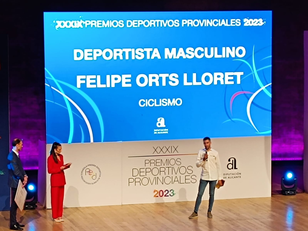 El ciclista vilero Felipe Orts ha recibido el reconocimiento como Deportista Masculino individual en la XXXIX gala de los Premios Deportivos Provinciales que otorga la Diputación Provincial de Alicante