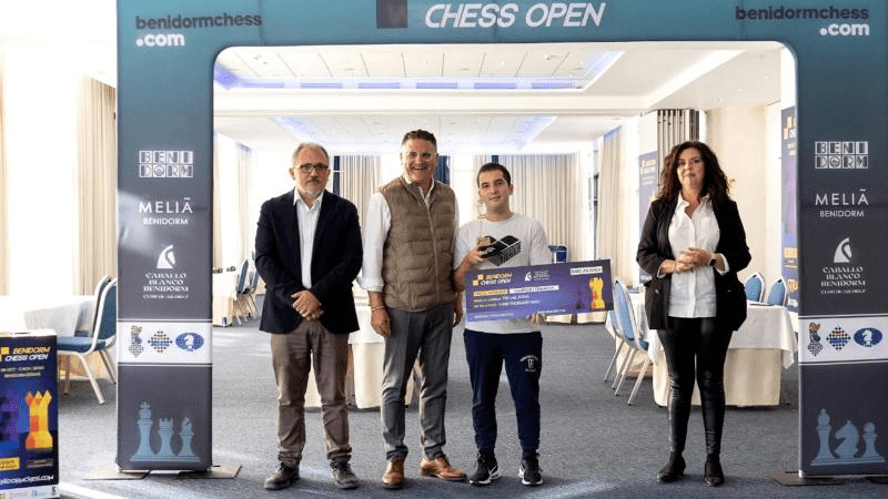 El concejal y diputado autonómico José Ramón González de Zárate fue el encargado de entregar los premios a los ganadores del Benidorm Chess Open, que según la organización y especialistas ha vivido en esta edición su “consolidación por el salto de calidad experimentado” a nivel de “participación, desarrollo, calidad y afluencia de participantes, acompañantes y público en general”.