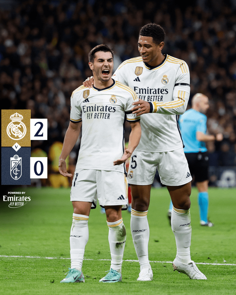 Ayer jugaba el Real Madrid en casa, en su estadio, el Santiago Bernabéu y conseguía una cómoda victoria ante el Granada, que le coloca líder empatado con el Girona, coliderando la clasificación pero liderándole por el goal averga. Con goles de Ibrahím Díaz y Rodrigo, el Real Madrid conseguía una nueva victoria ante su afición.