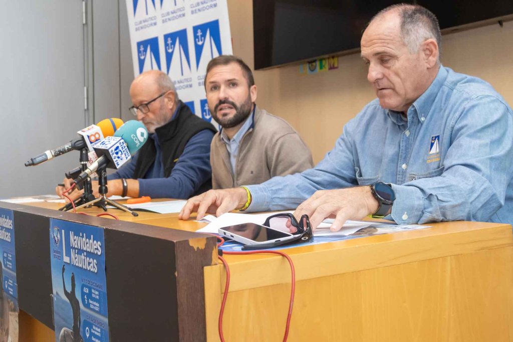 El Ayuntamiento de Benidorm y el Club Náutico celebrarán el próximo fin de semana y el 13 y 14 de enero la 50ª edición de las Navidades Náuticas de vela, que cuentan con la colaboración de la Federación Valenciana de Vela. La actividad ha sido presentada esta mañana en rueda de prensa por el concejal de Deportes, Javier Jordá, que ha estado acompañado por el presidente del Club Náutico, Jaime Samper y del director deportivo del club, Rafa Madaleno.