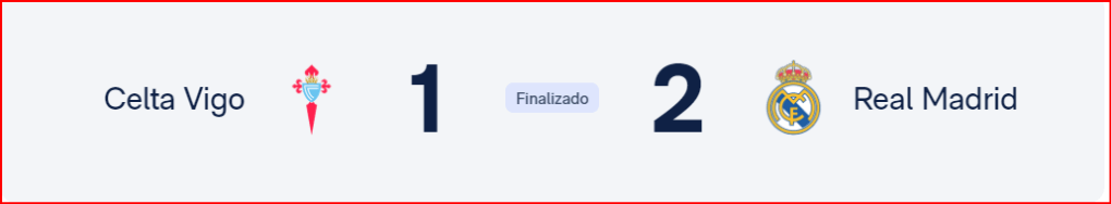 El partido comenzó a un ritmo frenético y el Celta estuvo cerca de hacer el 1-0 a los ocho minutos en un mano a mano de Williot con Courtois, en el que el belga estuvo impresionante. La clara ocasión de los locales hizo reaccionar a los de Ancelotti, que un minuto después pudieron marcar con un disparo de Valverde desde la frontal que despejó con problemas Guaita. No perdonó el Real Madrid mediada la primera mitad. Camavinga recuperó en la presión alta y el balón llegó a Mbappé, que adelantó a los visitantes en el 20’ con un potente disparo ante el que nada pudo hacer la estirada del portero local. Sexto gol del francés en el campeonato, octavo en partido oficial.