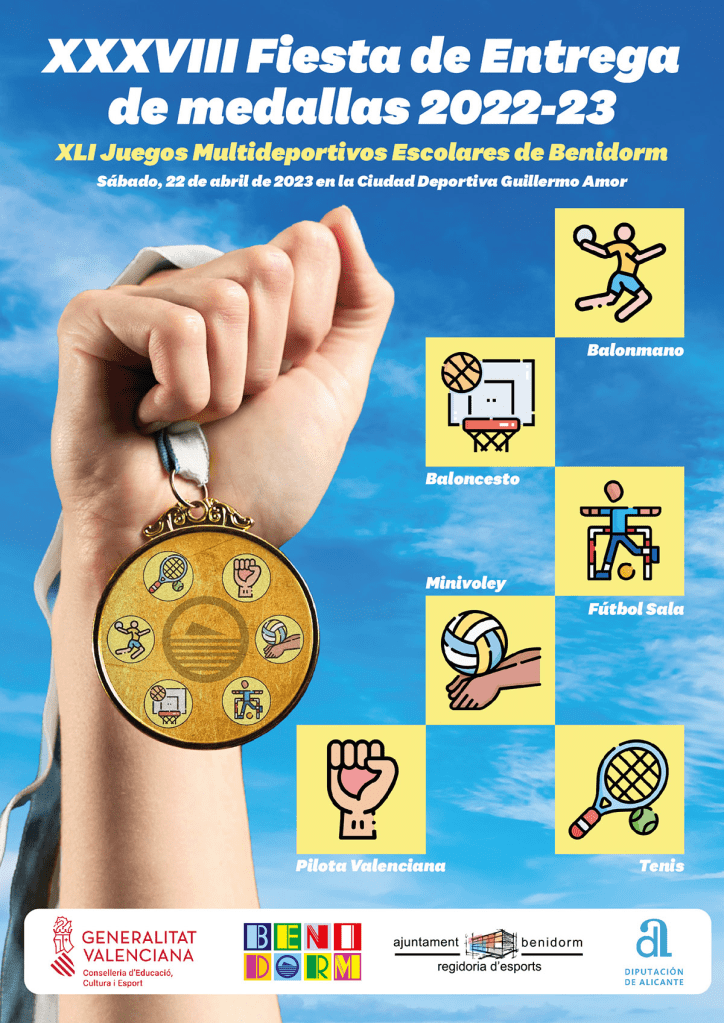 El próximo Sábado 22 de abril, se celebrará en las instalaciones de la Ciudad Deportiva Municipal “Guillermo Amor”, la entrega de medallas de la XXXVIII edición de los Juegos Multideportivos Escolares de #Benidorm.