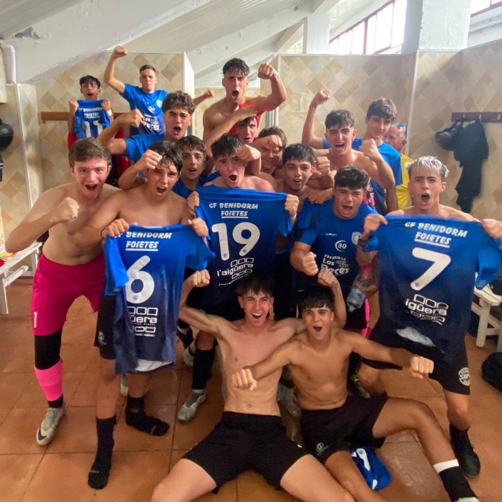 EL Benisa necesitaba una victoria para alcanzar la segunda posición , el CF Benidorm se adelantaba en el marcador tras un pase en profundida de Carlos para Pedro (cadete) que define perfectamente.