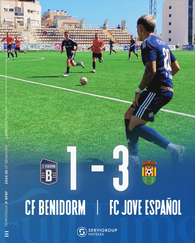 Primera derrota de la temporada, donde el equipo benidormí jugó casi toda la segunda parte con un jugador menos.