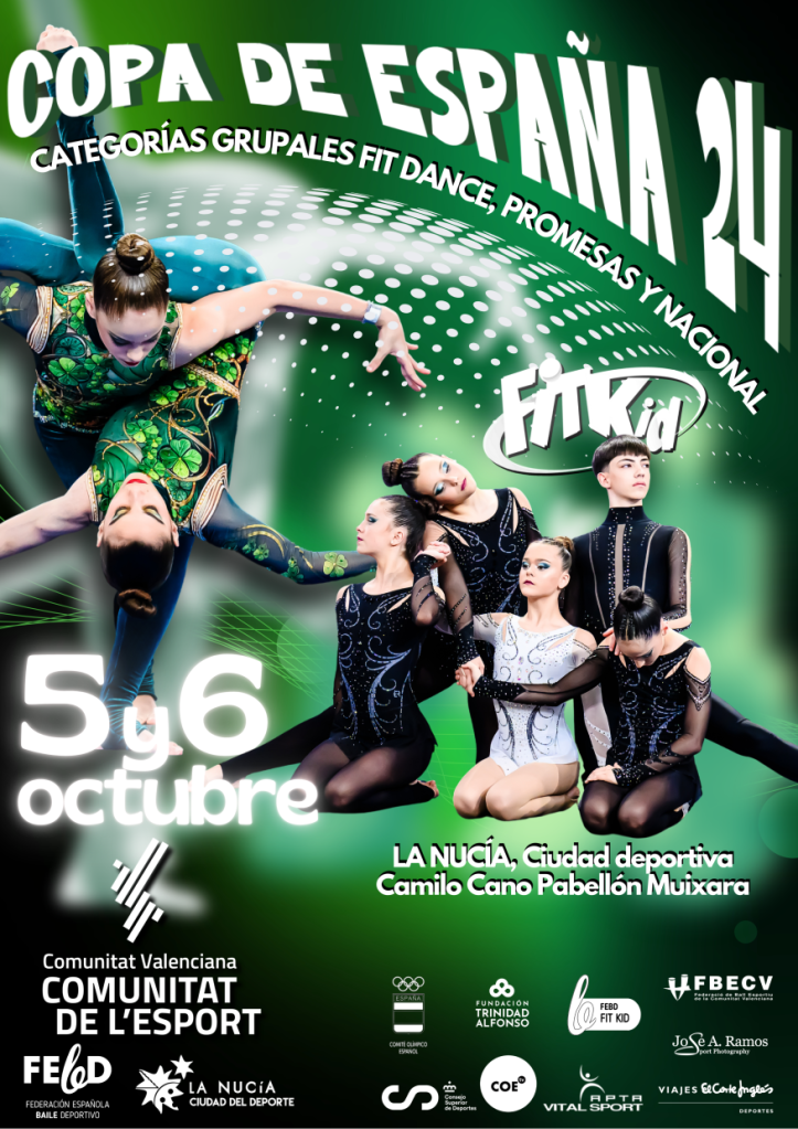 La Copa de España de Fit Kids de Baile Deportivo está organizada por la Federación Española de Baile Deportivo con la colaboración del Comité Olímpico Español, Consejo Superior de Deportes, Fundación Trinidad Alfonso, Comunitat Valenciana – Comunitat de l’Esport, Federació de Ball Esportiu de la Comunitat Valenciana y el Ayuntamiento de La Nucía.