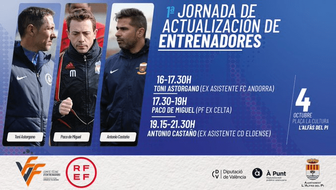 La Casa de Cultura de l’Alfàs del Pi acogerá hoy viernes la primera Jornada de Actualización para Entrenadores. Una actividad formativa totalmente gratuita que organiza la Real Federación Española de Fútbol (RFEF) para facilitar a los entrenadores la obtención del ‘Certificado de Actualización y Reciclaje’.