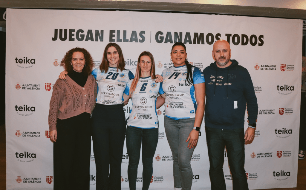 El Club Voleibol Playas de Benidorm, representado por su director deportivo Ramón González, la entrenadora Noelia Santacreu y las jugadoras María Soldevila (capitana), Yusidey Silie y Patricia Calabuig, asistió ayer a la presentación oficial de la octava edición de la campaña ‘Juegan ellas, ganamos todos’, organizada por Teika, principal patrocinador del equipo