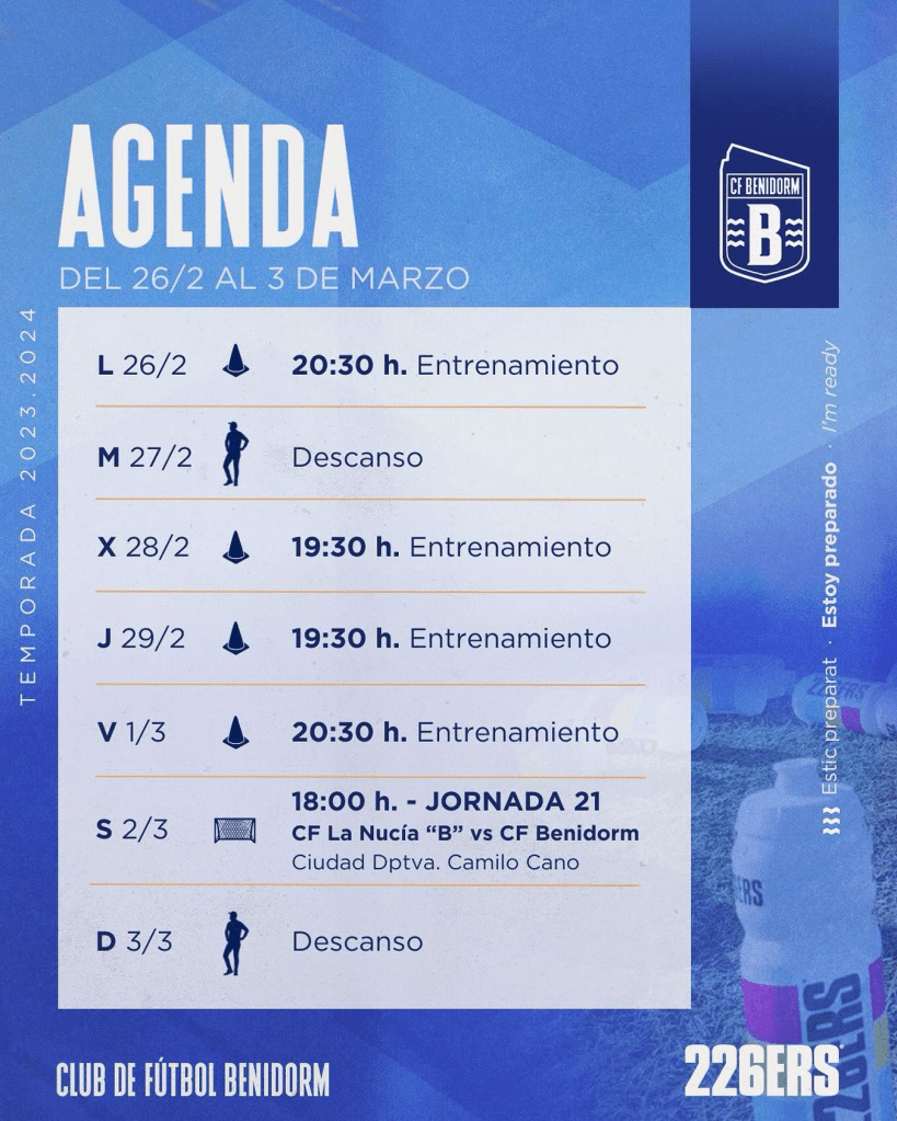 FUTBOL REGIONAL Esta es la Agenda del CF Benidorm para esta semana Imagen 26 de febrero de 2024 calvariperiódicodigital Deja un comentario